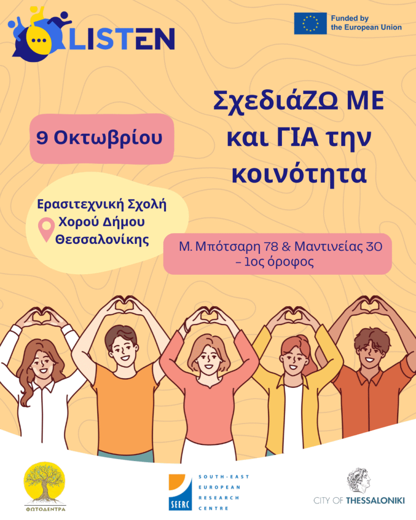 Το έργο LISTEN σας προσκαλεί σε δύο επιμορφωτικά εργαστήρια με τίτλο «ΣχεδιάΖΩ ΜΕ και ΓΙΑ την Κοινότητα»: